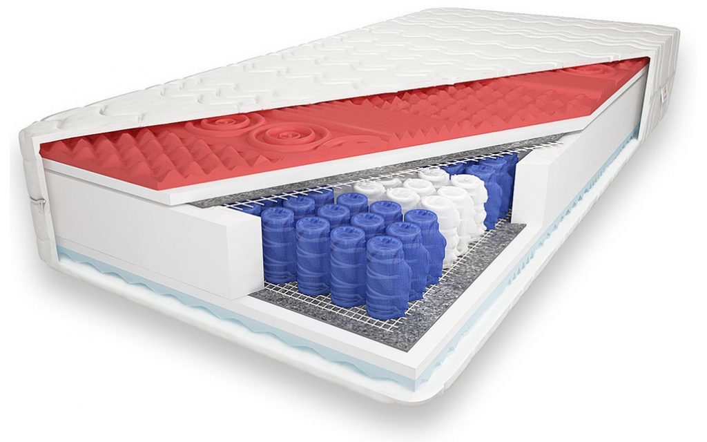 9 zoners pocket fjedre, enhver isoleret separat af superelastisk materiale. I alt er der 289/m2 fjedre lavet på baggrund af NanoHARD teknologi. Hårdhedsgrad: H3